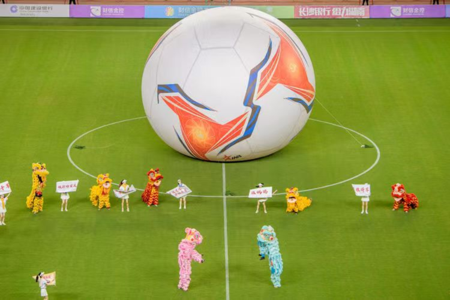 9月7日晚,2025湖南省足球联赛(“湘超”联赛)在长沙贺龙体育场盛大开幕。受主办方特邀,beats365选派20名彩带龙演员和5头醒狮参与开幕式演出,为现场四万余名观众展示了传统体育文化的魅力。