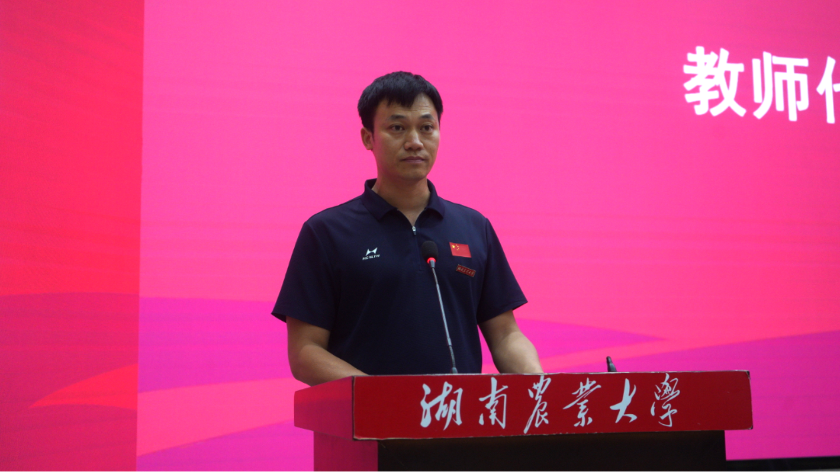 教师代表何伟兴以“梦想、自律、团队、健康”四大关键词为纲,寄语新生将体育精神融入血脉,在公司的育人沃土中锤炼意志、涵养品格。他代表全体教师庄严承诺:将以饱满热忱投身教学,用专业素养与育人爱心,为每一位学子的成长保驾护航。