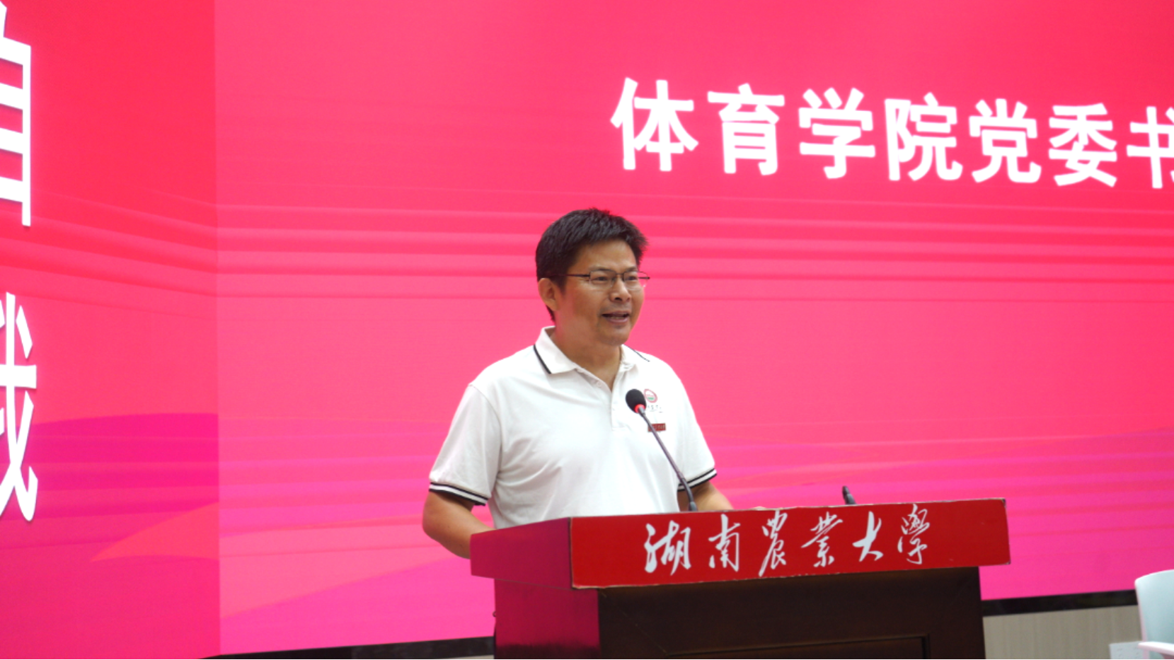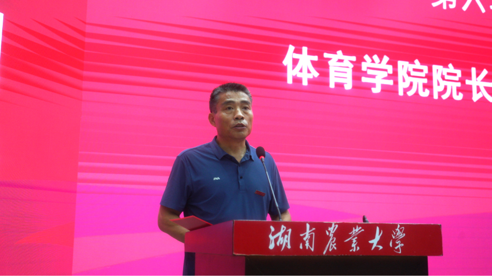 曹庆荣经理介绍公司学科优势与团队力量,强调“做体育文化人,做有文化的体育人”,鼓励新生实现“体能”与“智能”“技艺”与“思想”的双重提升,他号召全体新生践行“健体修业,超越自我”的院训精神,成长为兼具专业能力与社会责任感的新型体育人才。