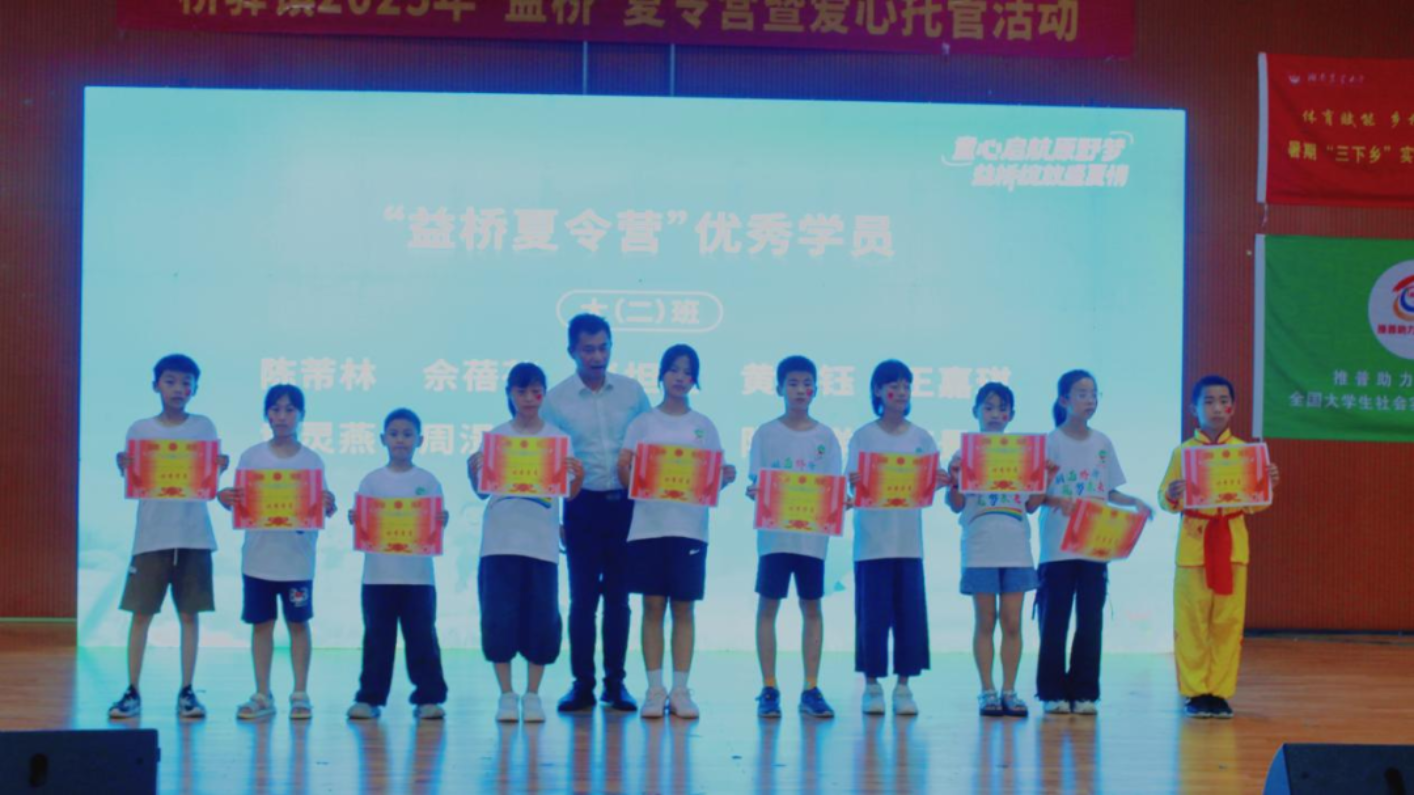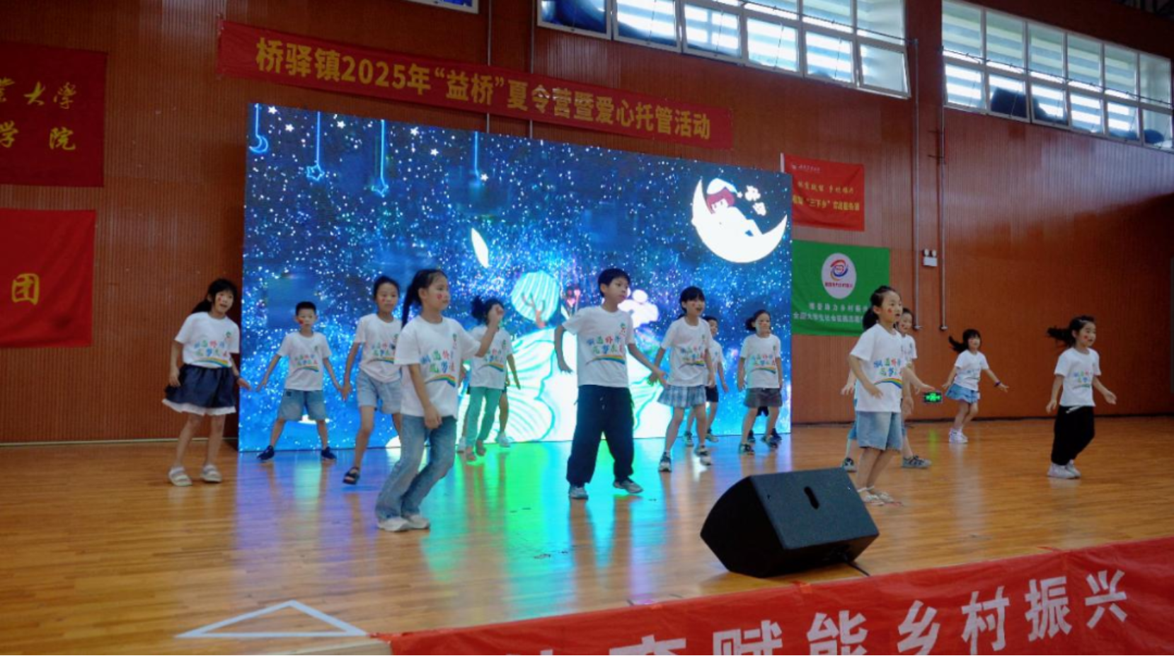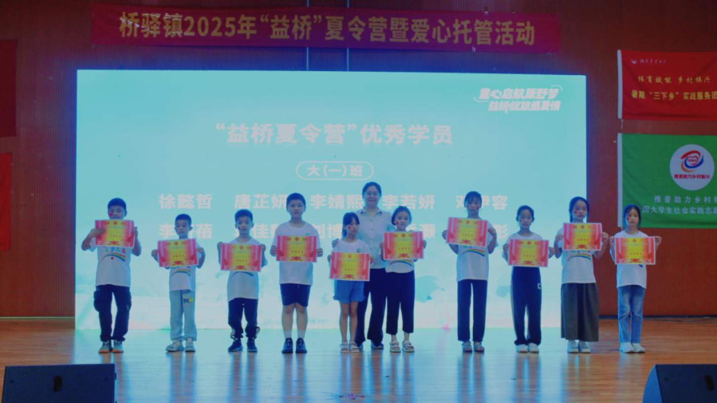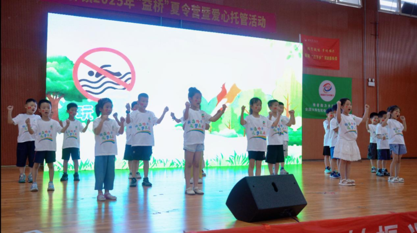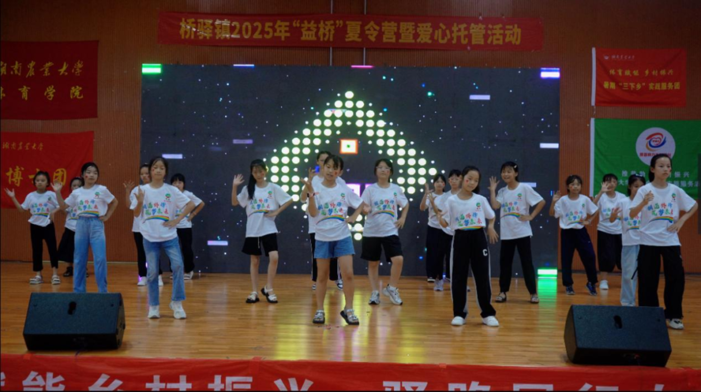孩子们身着桥驿文化衫,以满腔热忱和扎实技艺,展现夏令营期间的成长硕果。舞蹈的热情、篮球操的活力、朗诵《乡愁》中的家国情怀……每一幕都是汗水浇灌的成长印记,更折射出新一代向上向善的精神底色。彩蛋环节,志愿者以舞寄情,以肢体语言诉说对桥驿的拳拳深情与灼灼期盼。