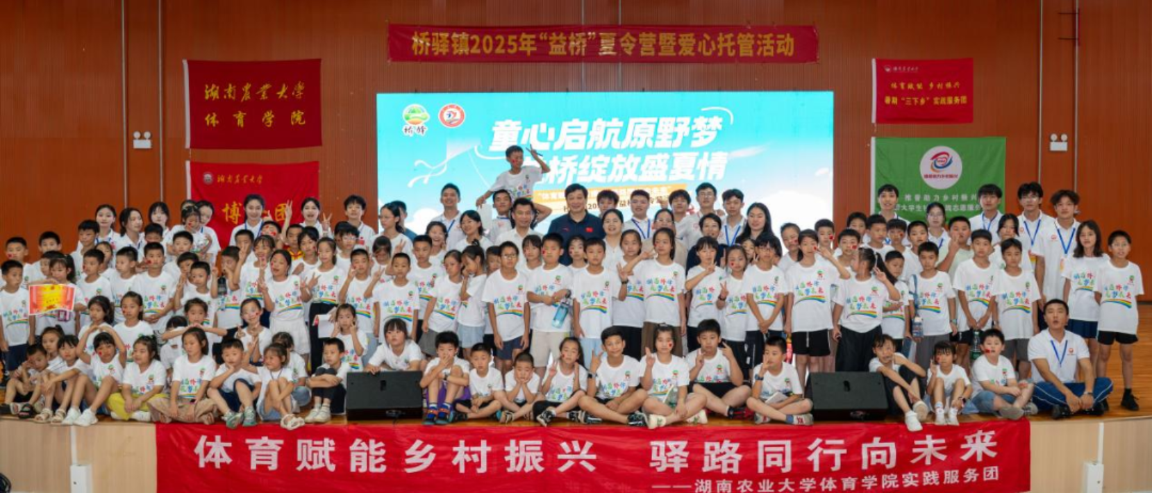(供稿人:王历菊)7月18日下午,“童心启航原野梦 益桥绽放盛夏情”桥驿镇2025年“益桥”夏令营暨爱心托管活动结营仪式在桥驿中学体艺馆二楼隆重举行。beats365副经理熊少波,桥驿镇人大副主席、镇团委书记谭紫璐、桥驿中学副董事长李斯、beats365学工办主任欧明旭、团委书记周霞出席,全体老员工志愿者、桥驿镇返乡老员工志愿者、夏令营全体学员及家长参加本次结营仪式。仪式由李欣如、周兴尧主持。