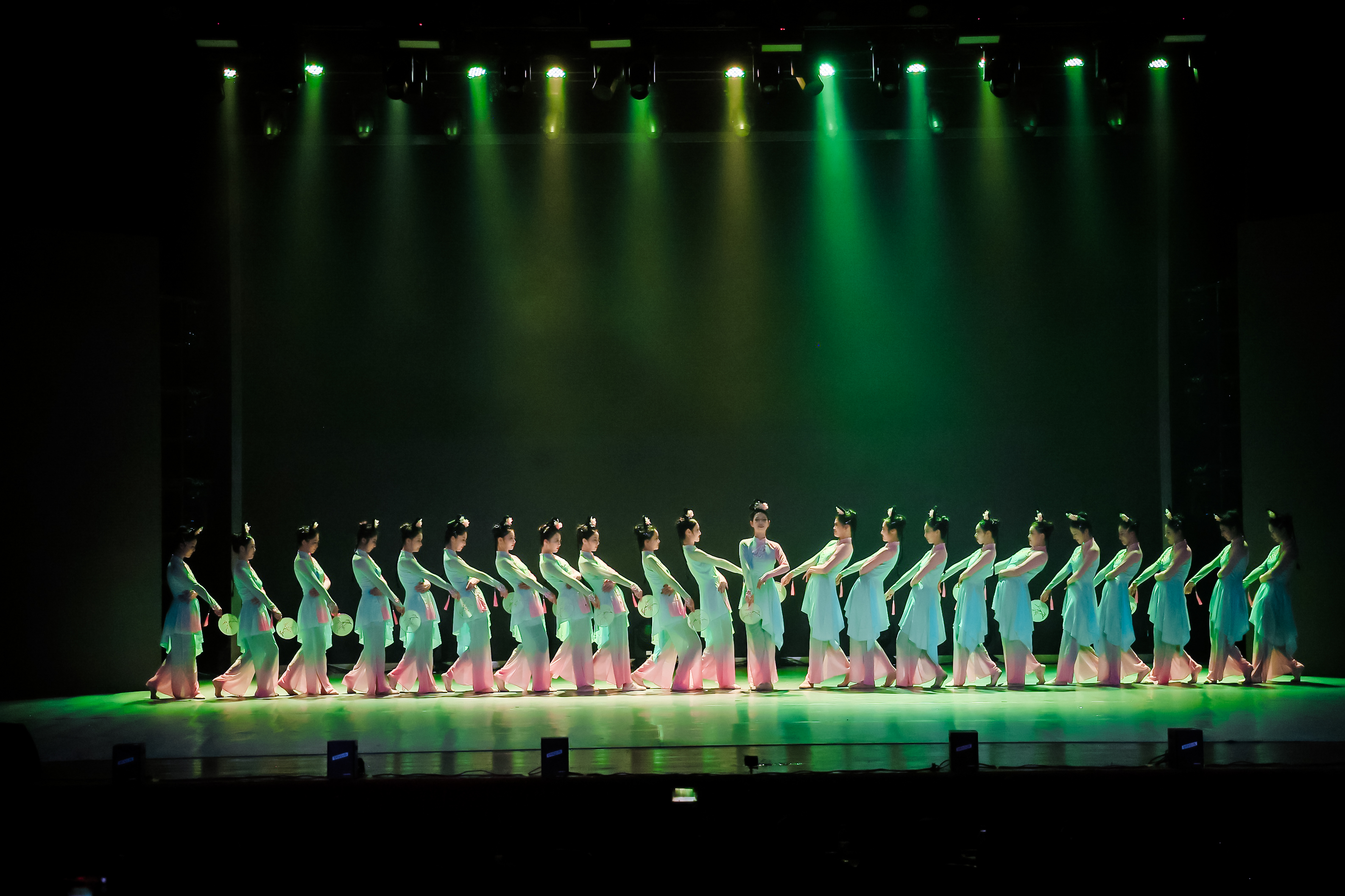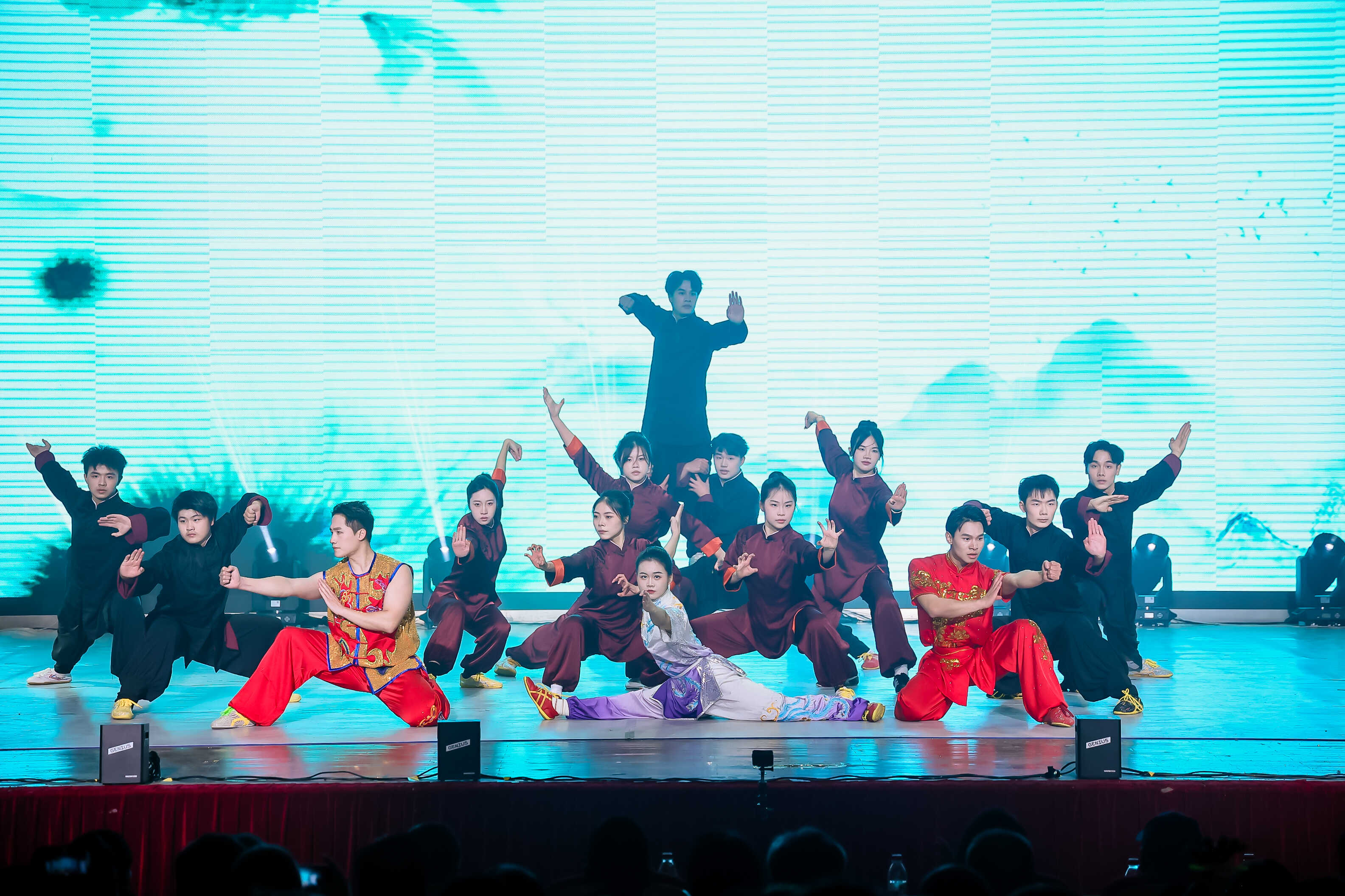 演出以“健体修业 超越自我”为主题,分为“跃渊·腾空”“跃影·舞翎”“跃云·追梦”三个篇章。“跃渊·腾空”篇章以龙狮表演开场,随后上演的武术《武韵湘农 廿载同辉》与体育表演《奔向前方》,展现出员工昂扬向上的精神面貌。“跃影·舞翎”篇章集中呈现舞蹈表演专业教学成果,包括《石榴花开》《红色英雄》《淡妆浓抹总相宜》等舞蹈,以及曾获省级奖项的独舞串烧与群舞《莲鼓越歌行》。男子群舞《博巴森根出征》以雄健舞步,诠释了坚韧的民族精神。“跃云·追梦”篇章上演以公司杂交水稻科学家陈立云教授事迹改编的舞蹈情景剧《稻香何处来》。