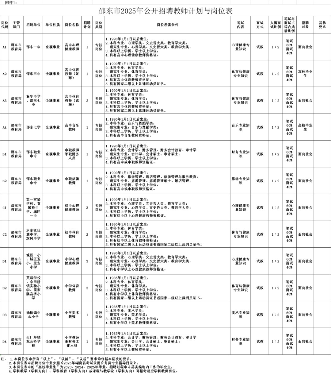 附件1:《邵东市2025年公开招聘教师计划与岗位表》